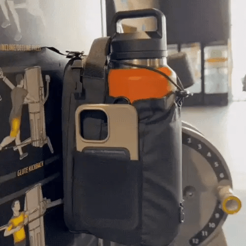 🎒 Compacto y espacioso — Guarda celular, botella, llaves, guantes, suplementos y más.